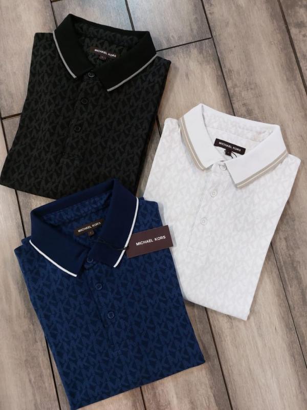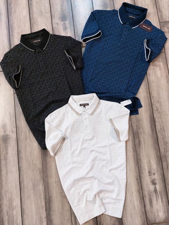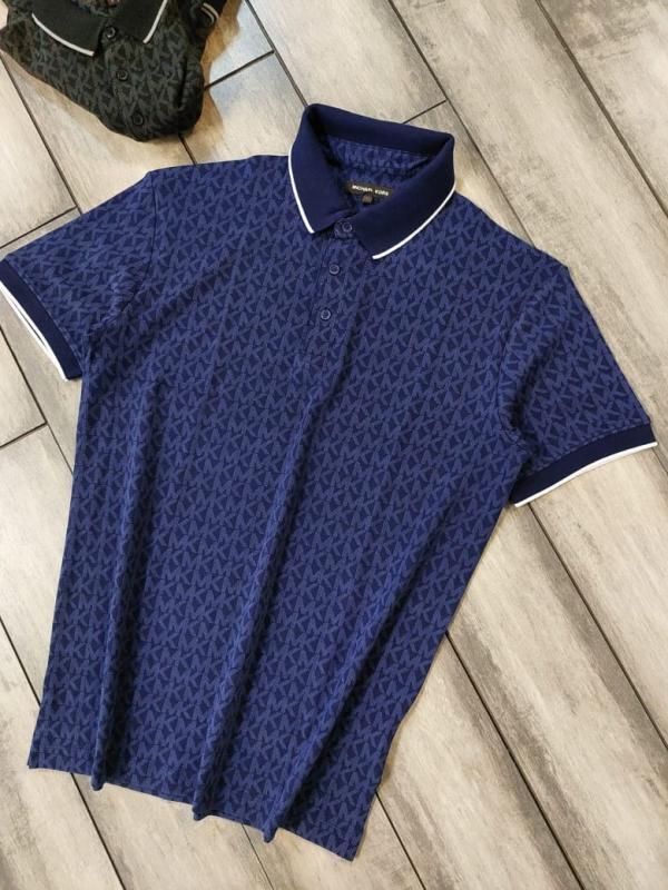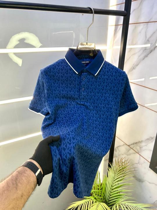 Home T-Shirts Michael_Kors Monogram Print Blue Polo Premium Collar neck T-shirt F3236-BU