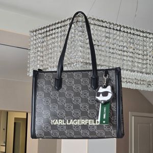 Karl Lagerfeld Textured Ikon Medium Structured Shoulder Bag Black With Dust Bag