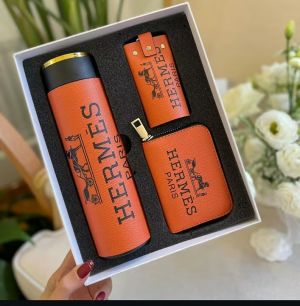 HERMES PARIS THERMOS & KEY HOLDER & CARD HOLDER GIFT SET PREMIUM WITH OG BOX