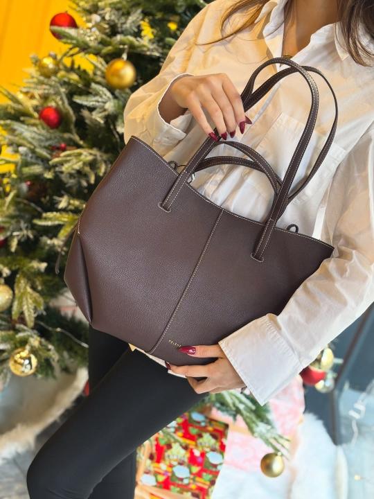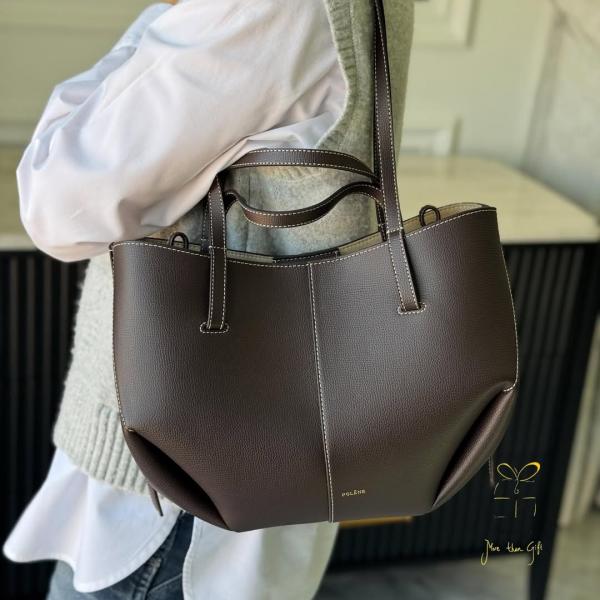 Polene Cyme Large Tote With Wallet & Original Dust Cover Dark Brown