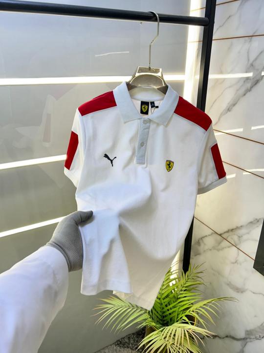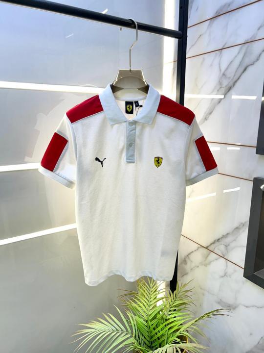 Home T-Shirts Pum a Ferrari Edition Polo Premium White Collar Neck T-shirt F2953-WH