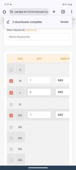 Select size