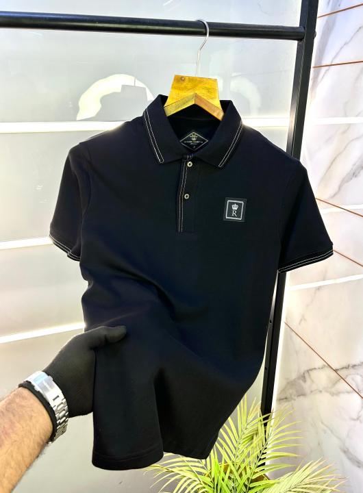Home T-Shirts Rare Rabbit Black Polo Premium Collar Neck T-shirt F2921-BL