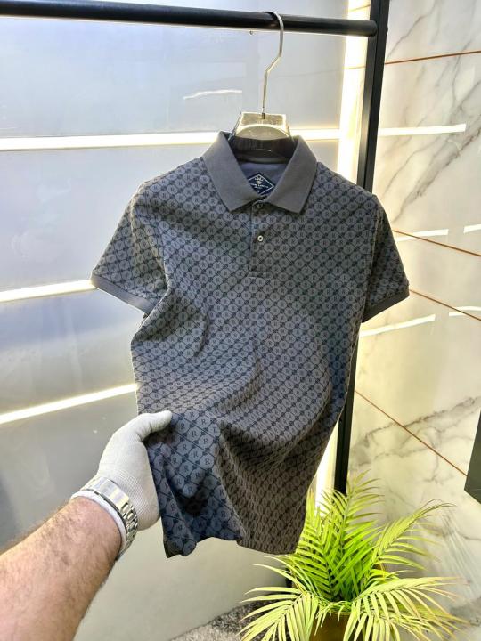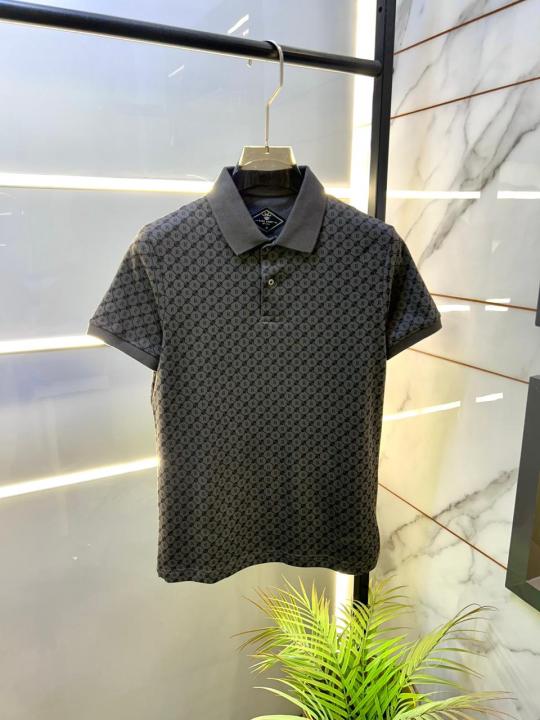 Home T-Shirts Rare Rabbit Grey Monogram Polo Premium Collar Neck T-shirt F3568-GY