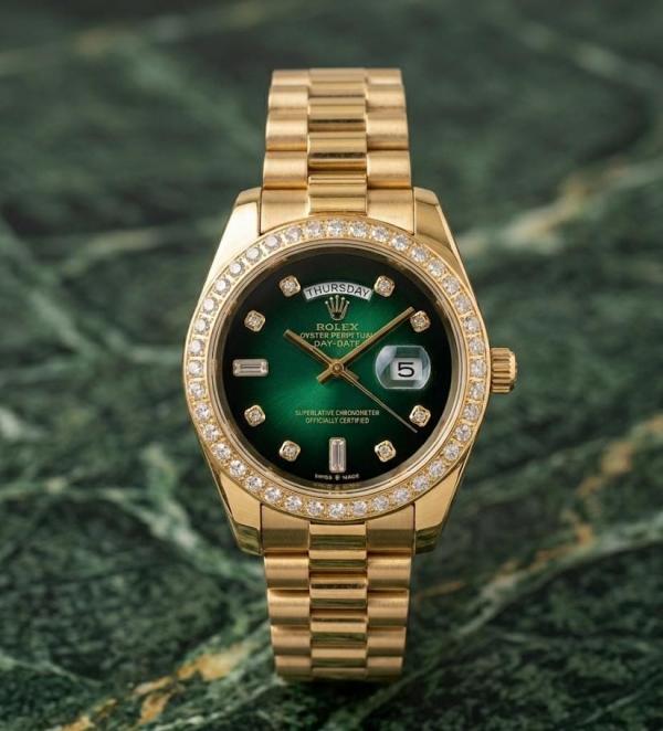 Role_x Oyster Perpetual Day Date Diamond Gold-Green