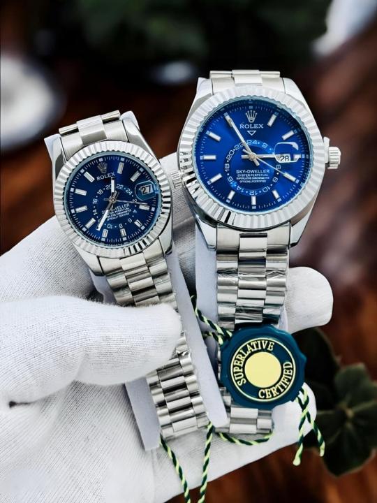 Rolex_Couple_Sky-Dweller_Date-Just_Silver_Blue