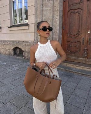 Polene Cyme brown Tote Large Size Premium With Dust Cover Packaging
