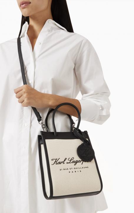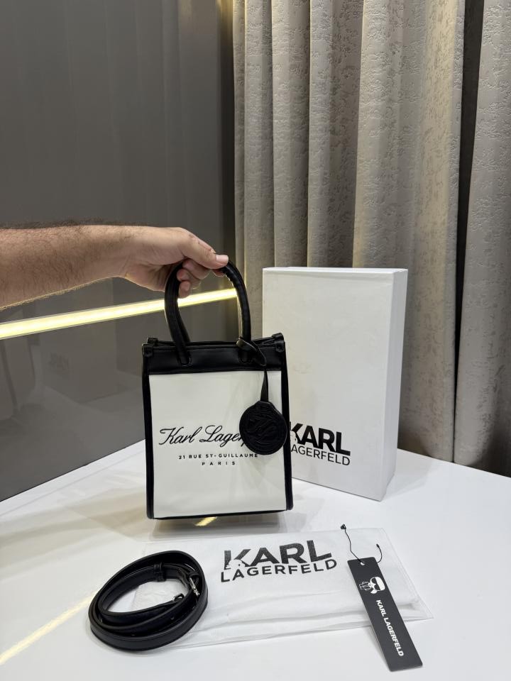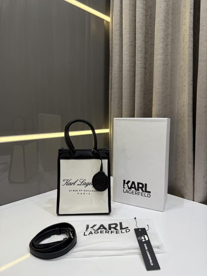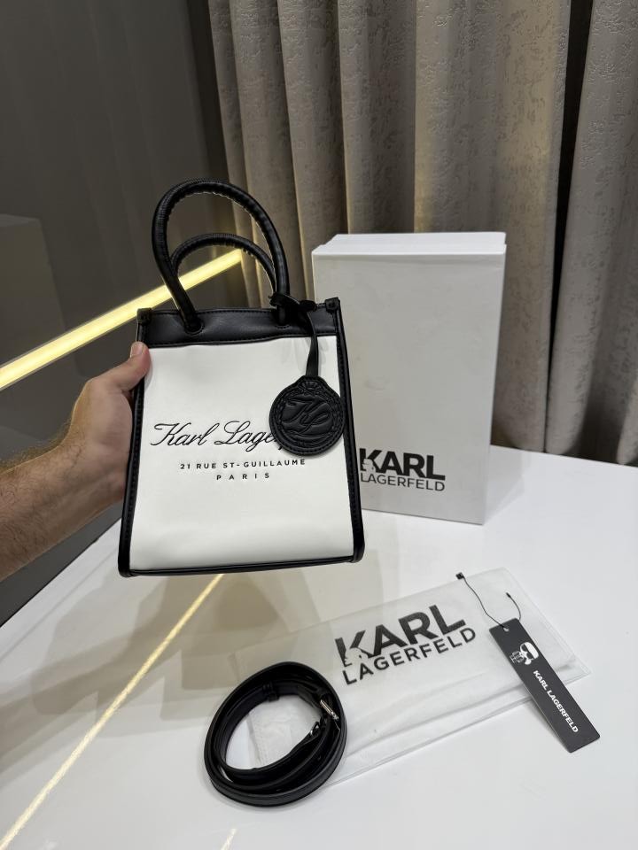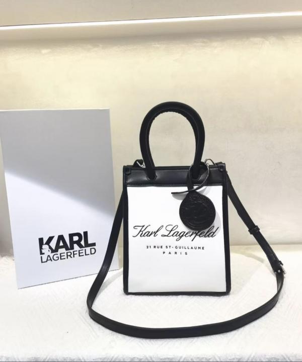 SALE KARL LAGERFIELD WHITEBLACK PREMIUM NEE SHAPE BAG WITH OG BOX & PACKING