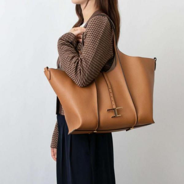 Tods T Timeless Premium Quality Leather Bag With Extra Pouch & OG Magnetic Box With Dust Bag (Tan - 446)