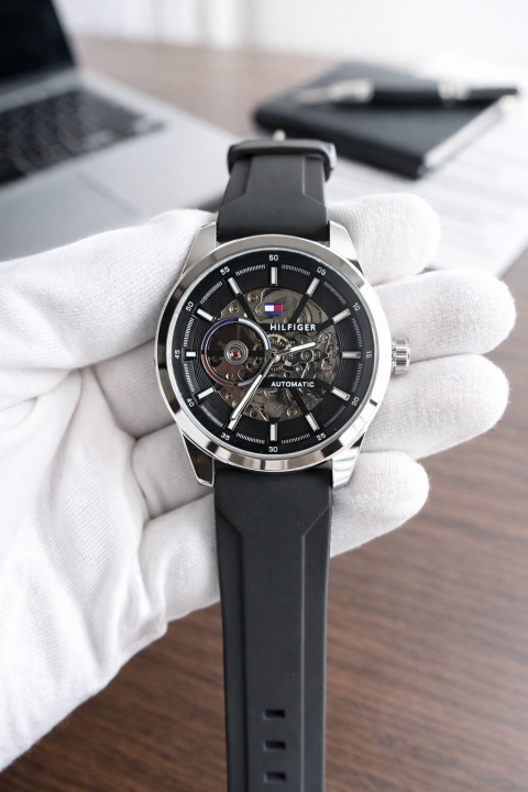Tommy Hilfiger Automatic Silicon Belt Black Silver Black?