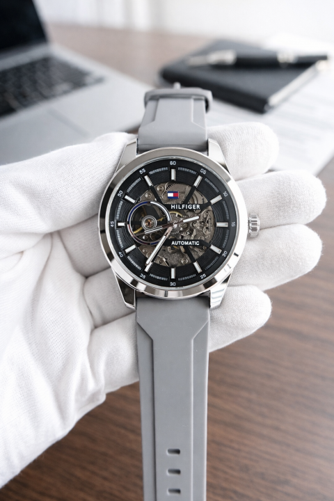 Tommy Hilfiger Automatic Silicon Belt Grey Silver Black?