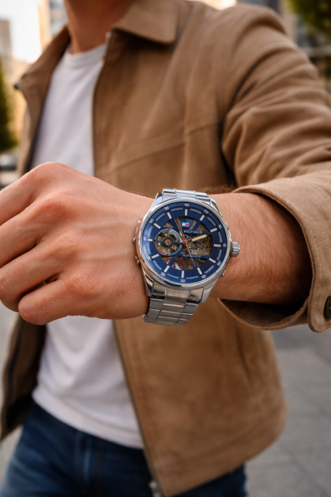 Home Mens Watch Tommy_Hilfiger Automatic Silver Blue Dial AT149