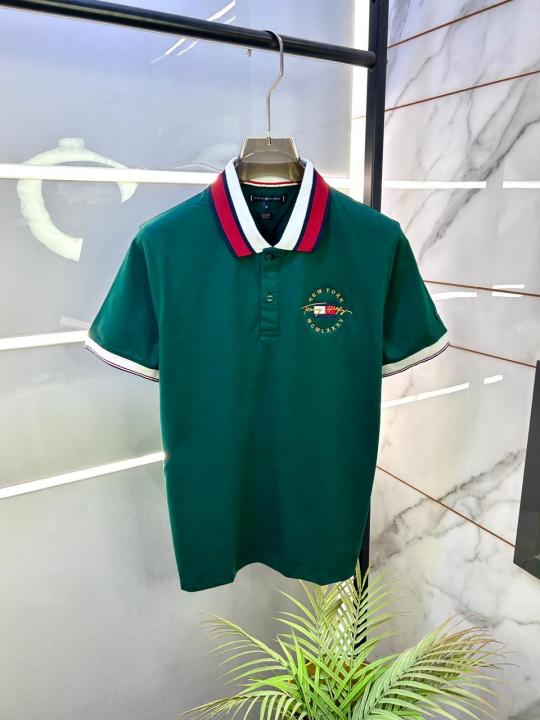Home T-Shirts Tommy_Hilfiger Green Embroidery Logo Collar Neck Premium Polo T-shirt F2804-GR