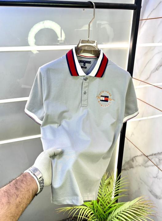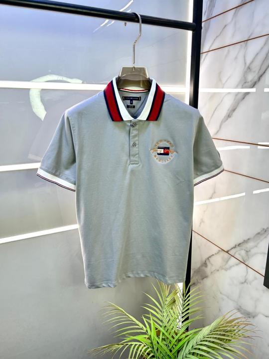 Home T-Shirts Tommy_Hilfiger Grey Embroidery Logo Collar Neck Premium Polo T-shirt F2804-GY