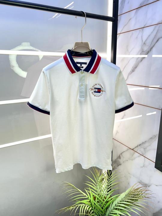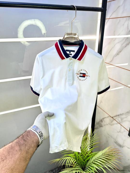 Home T-Shirts Tommy_Hilfiger White Embroidery Logo Collar Neck Premium Polo T-shirt F2804-WH