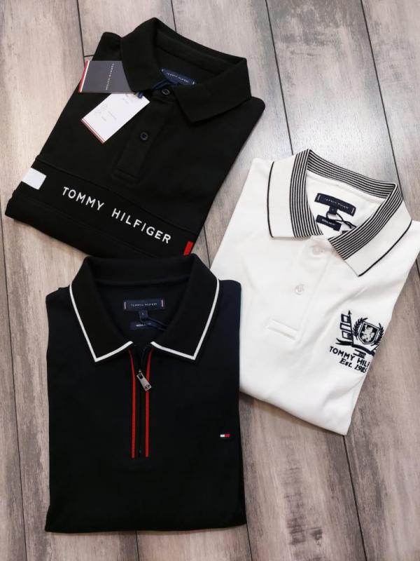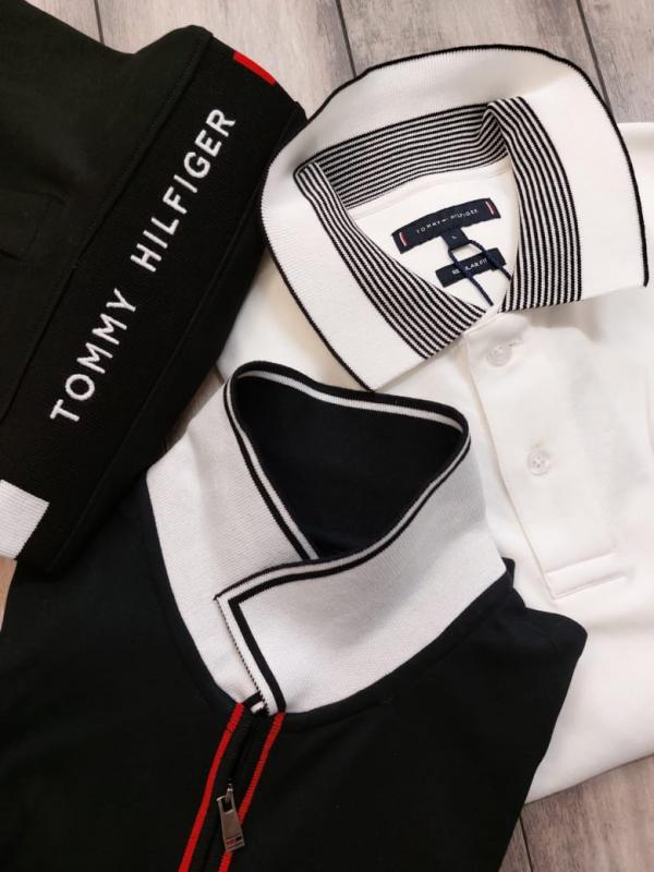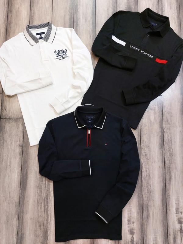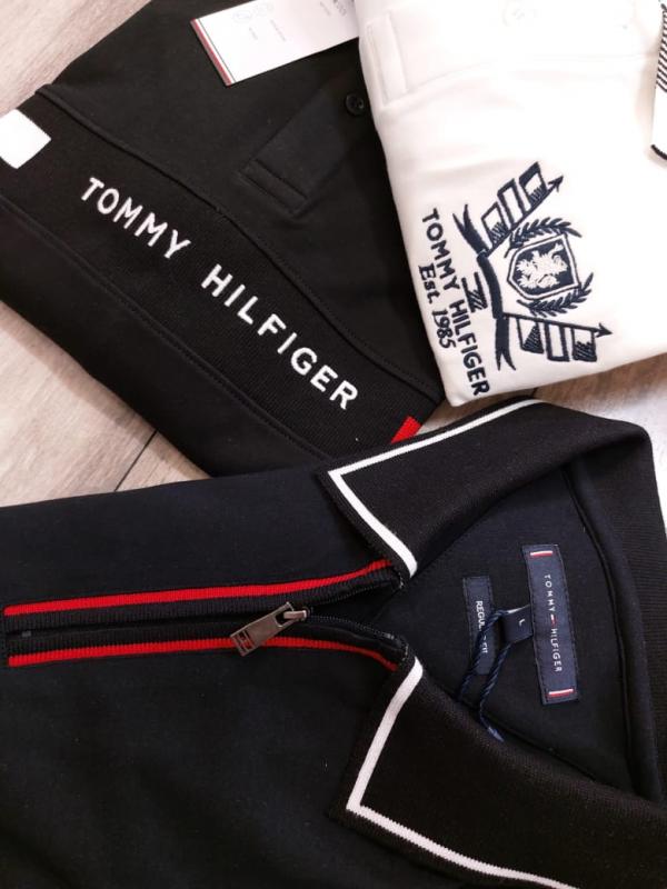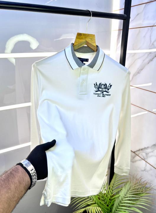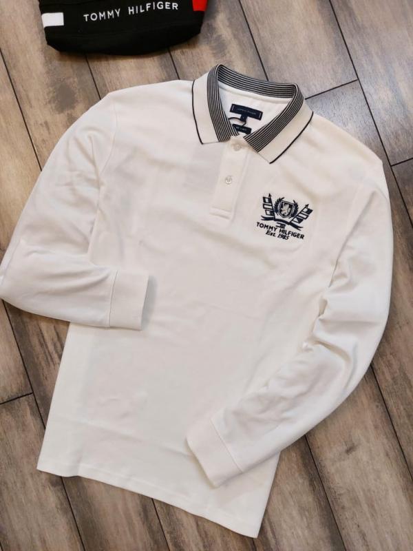 Home T-Shirts Tommy_Hilfiger White Polo Neck Full Sleeves Premium Collar T-shirt F2787-WH