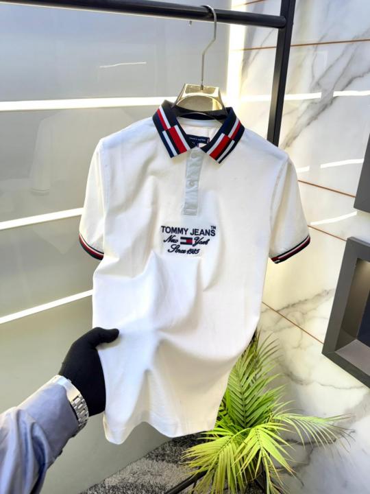 Home T-Shirts Tommy_Hilfiger White Polo Premium Collar Neck T-shirt F2911-WH