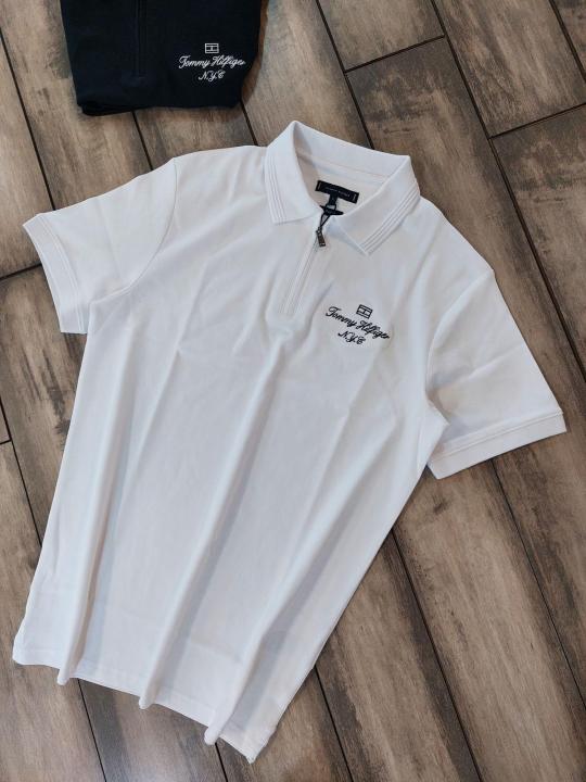 Home T-Shirts Tommy_Hilfiger White Polo Premium Collar Neck T-shirt F2927-WH