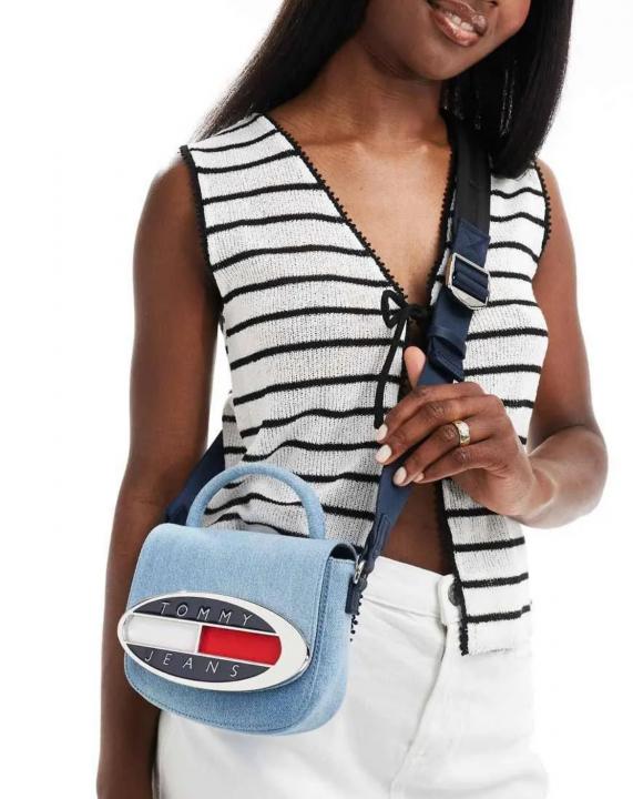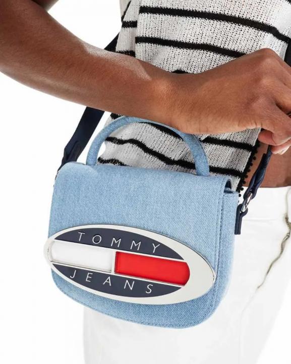 Tommy Jeans origin crossbody bag in light blue denim with box and carry bag 694
