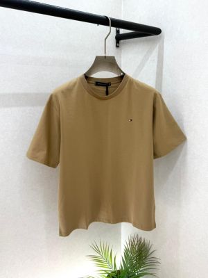 Tommy_Hilfiger Beige Premium Drop Shoulder Round Neck T-shirt With Brand Box Packing F3583-BE