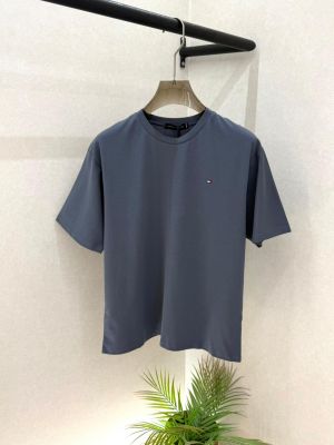 Tommy_Hilfiger Grey Premium Drop Shoulder Round Neck T-shirt With Brand Box Packing F3583-GY