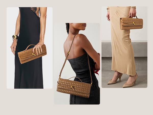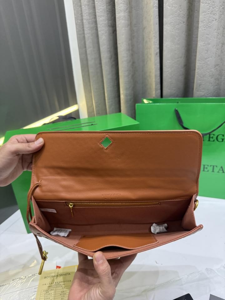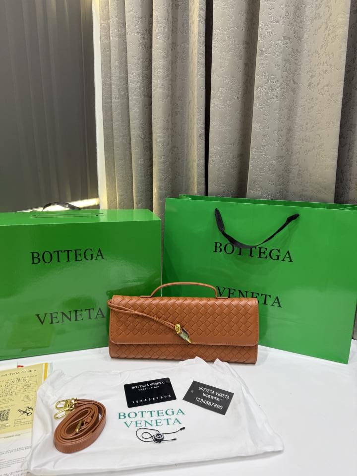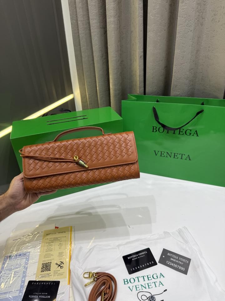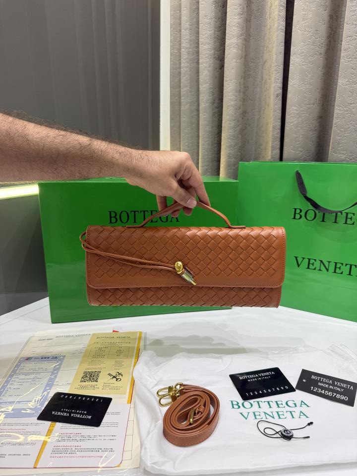 VENETA ANDIAMO TOP HANDLE LOGN CLUTCH BROWN LEATHER PREMIUM WITH OG BOX & CARY BAG