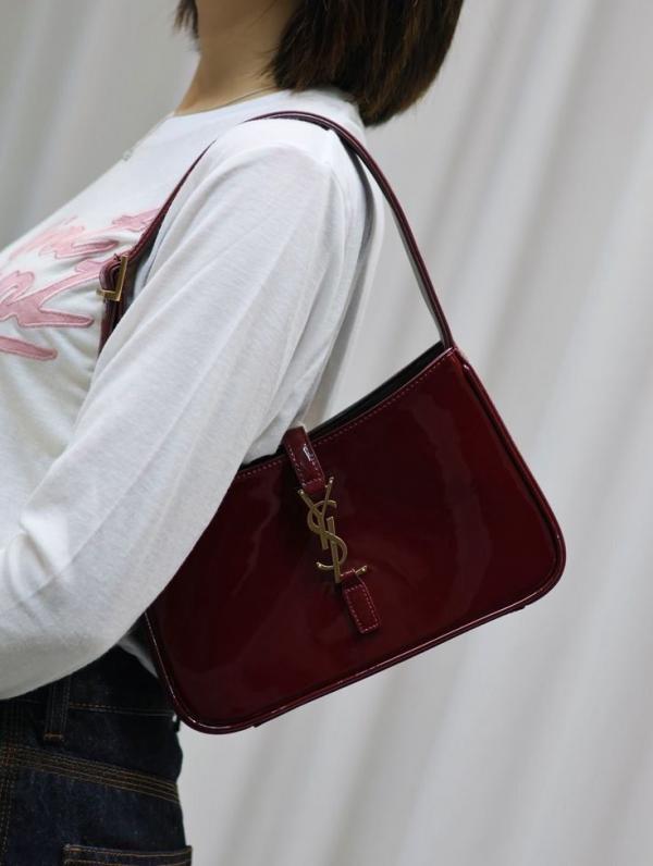 Ysl Hobo Patent Leather Shoulder Bag Non Zip Model With Original Box & CarryBag