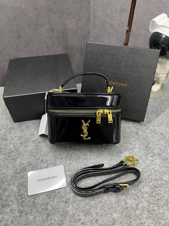 Ysl Saint Laurent Black Gaby Patent Leather Vanity Bag With OG Box & Dust Bag 77106 Mirror Black