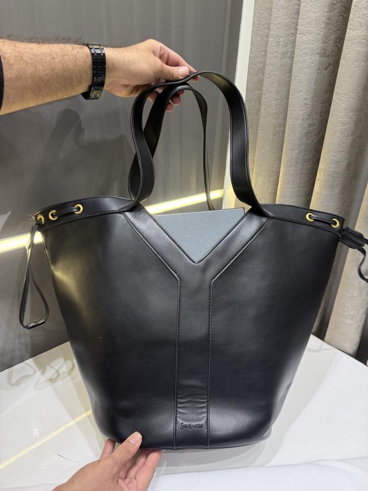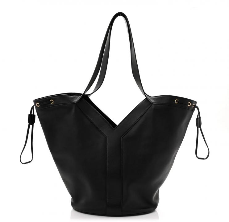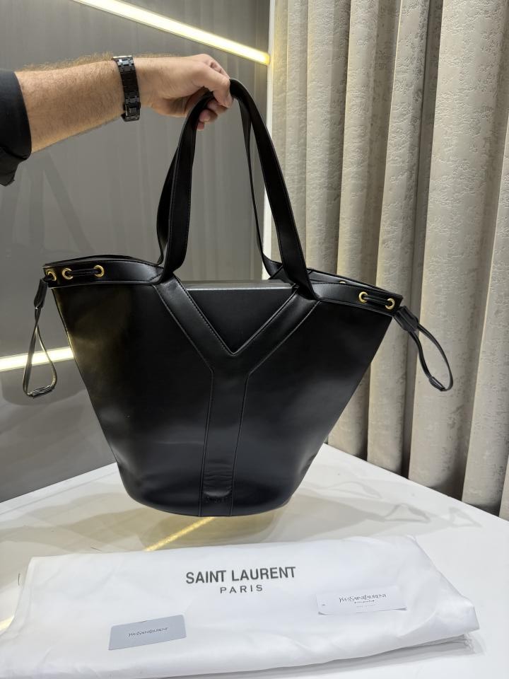 YSL SAINT LAURENT SANTORINI LUX CALFSKIN BLACK Y TOTE BAG DUST BAG