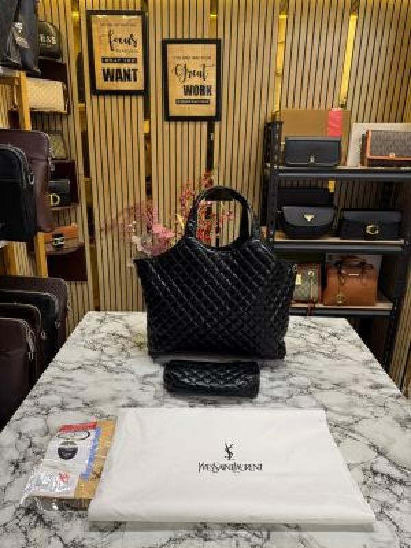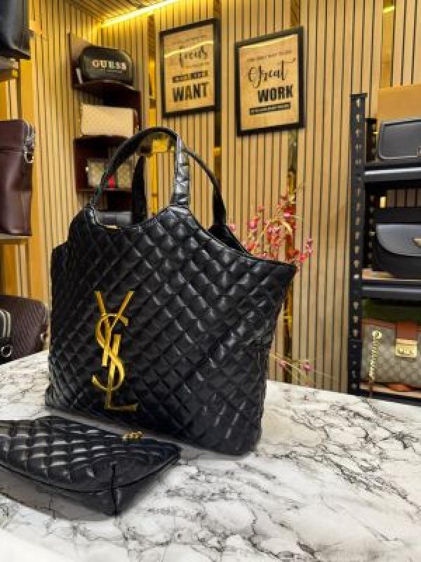 Yves Saint Laurent YSL Maxi Tote Bag With Matching Wallet Includes Dust Bag (Black)