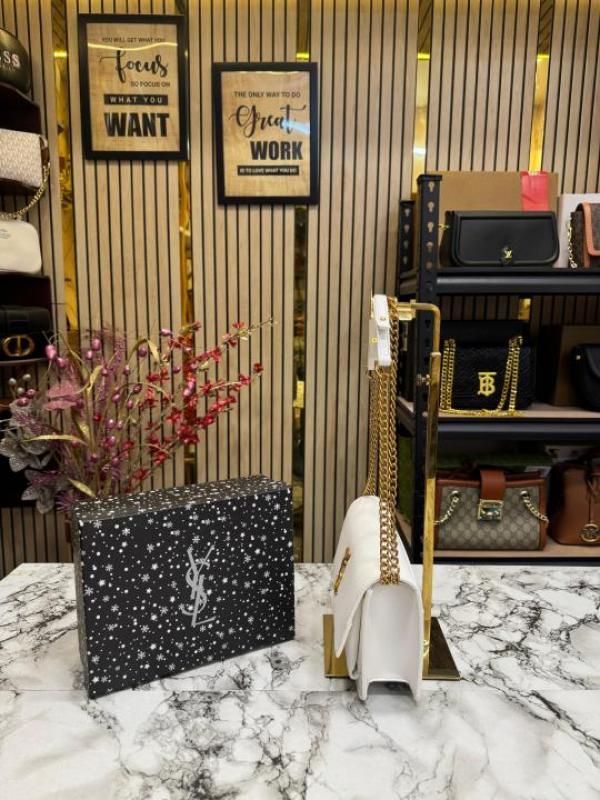 Yves Saint Laurent Ysl Sunset Shoulder Bag With Box And Dust Bag (White)