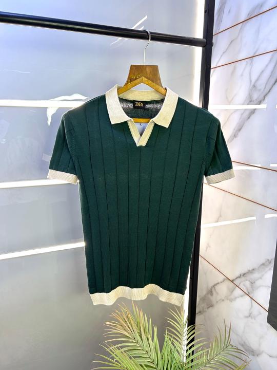 Home T-Shirts Zar a Knitted Polo Green Super Premium Collar Neck T-shirt F2622-GR