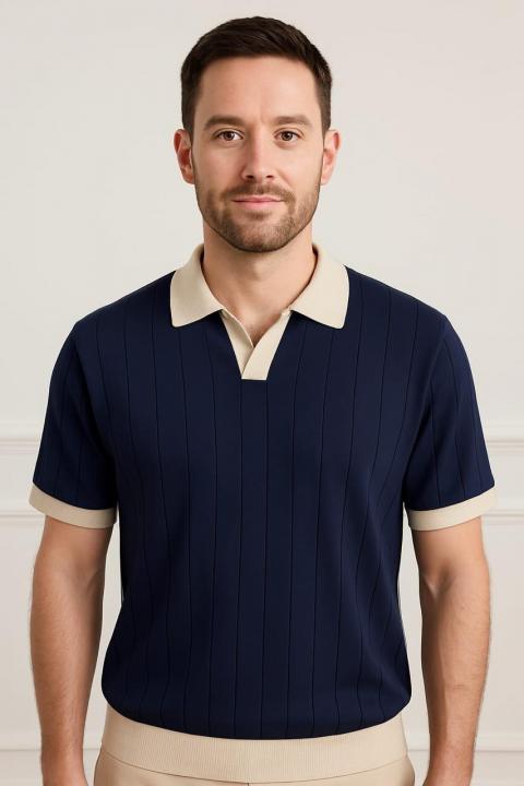 Zar a Knitted Polo Navy Super Premium Collar Neck T-shirt F2756-NY