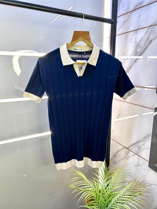 Home T-Shirts Zar a Knitted Polo Navy Super Premium Collar Neck T-shirt F2756-NY